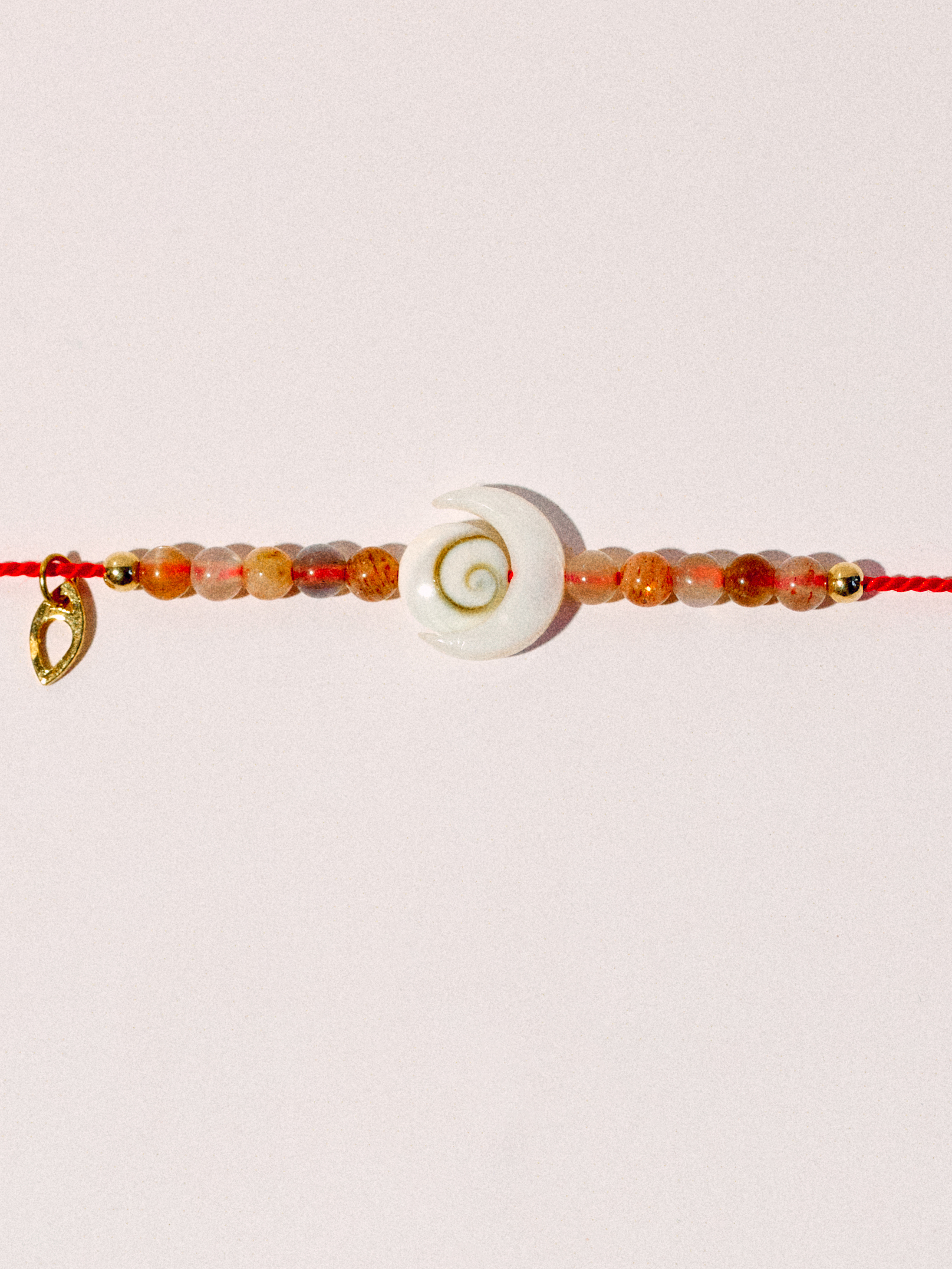 Le bracelet Galeria, issu de la collection Lucia, combine combine un pendentif en Oeil de Sainte-lucie et une lune en nacre entourée de perles de lune. Ce bijou élégant incarne la sérénité et la protection, parfait pour les amoureux des éléments naturels.
