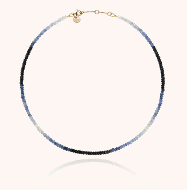 Une rivière d’émeraude forme un dégradé unique. Les pierres précieuses du collier rivière sont sélectionnées et assemblées à la main dans notre atelier parisien.