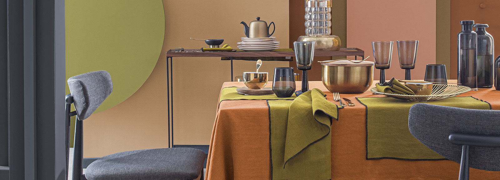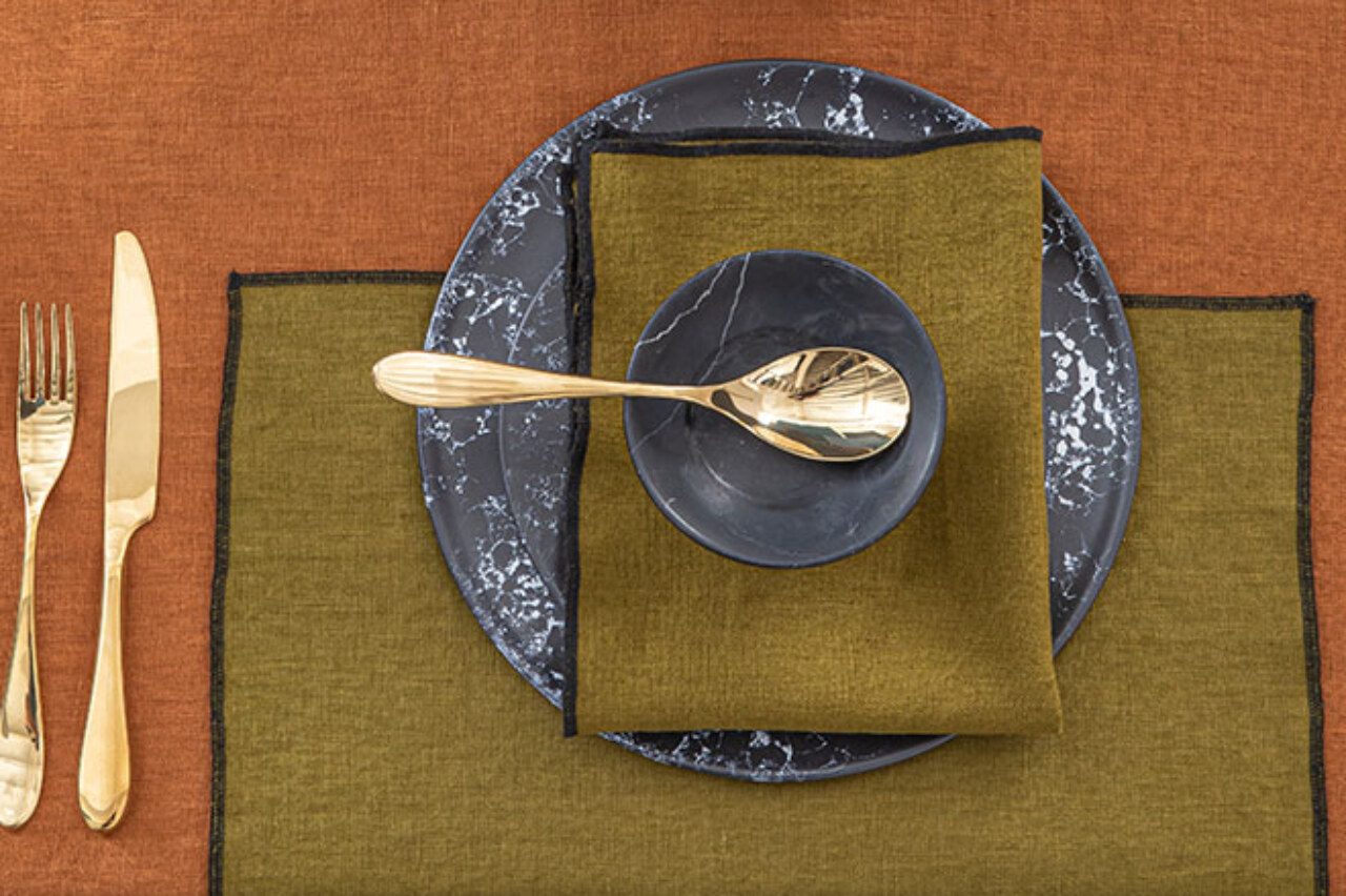 LETIA, Nappe Kaki de la Collection linge de table de chez hARMONY.