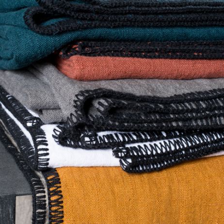 LETIA, nappe 100% Lin lavé, au grammage épais 240g/m2, finition croquet noir pour apporter du contraste et une touche déco.