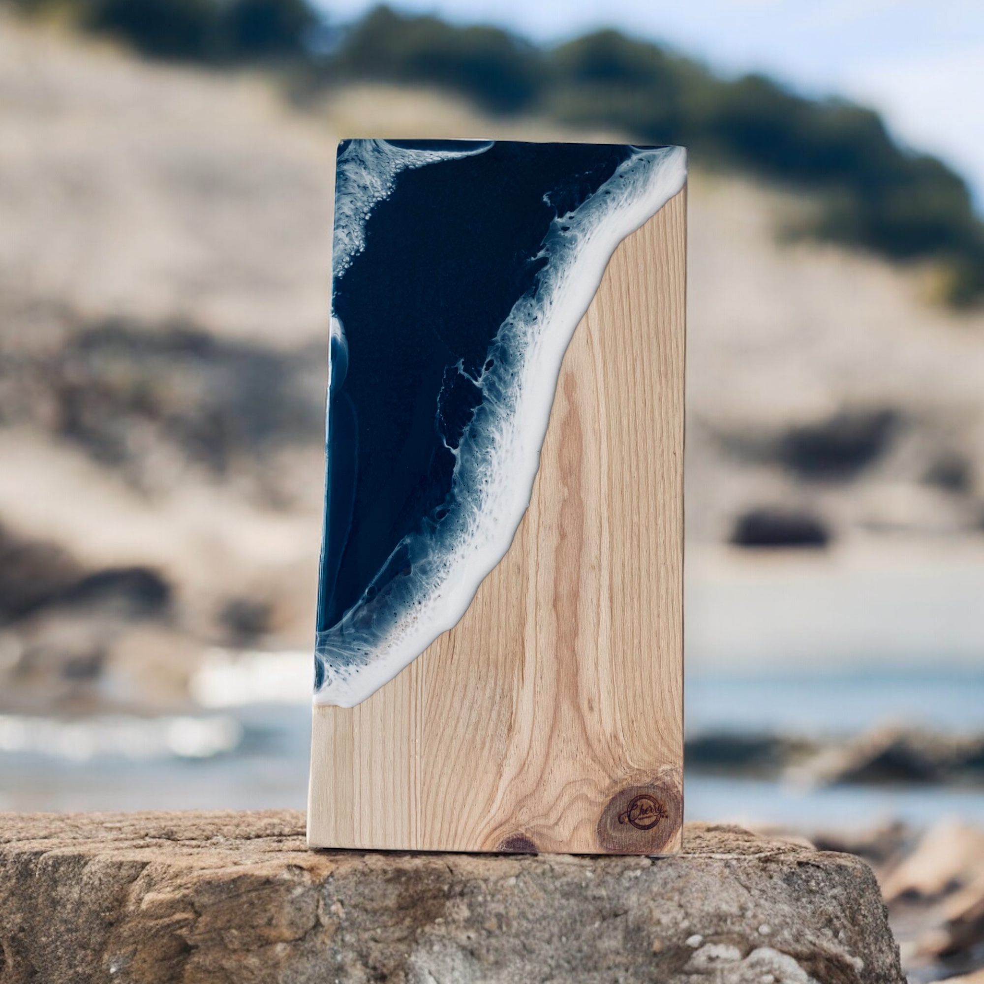 Planche à apéro » Grand Spérone » créée par Cherry créativité. Cette artiste peintre fait rentrer l’art et l’identité insulaire dans le lifestyle. A travers ses créations elle donne vie à l’art par l’énergie du mariage de la résine et des minéraux.